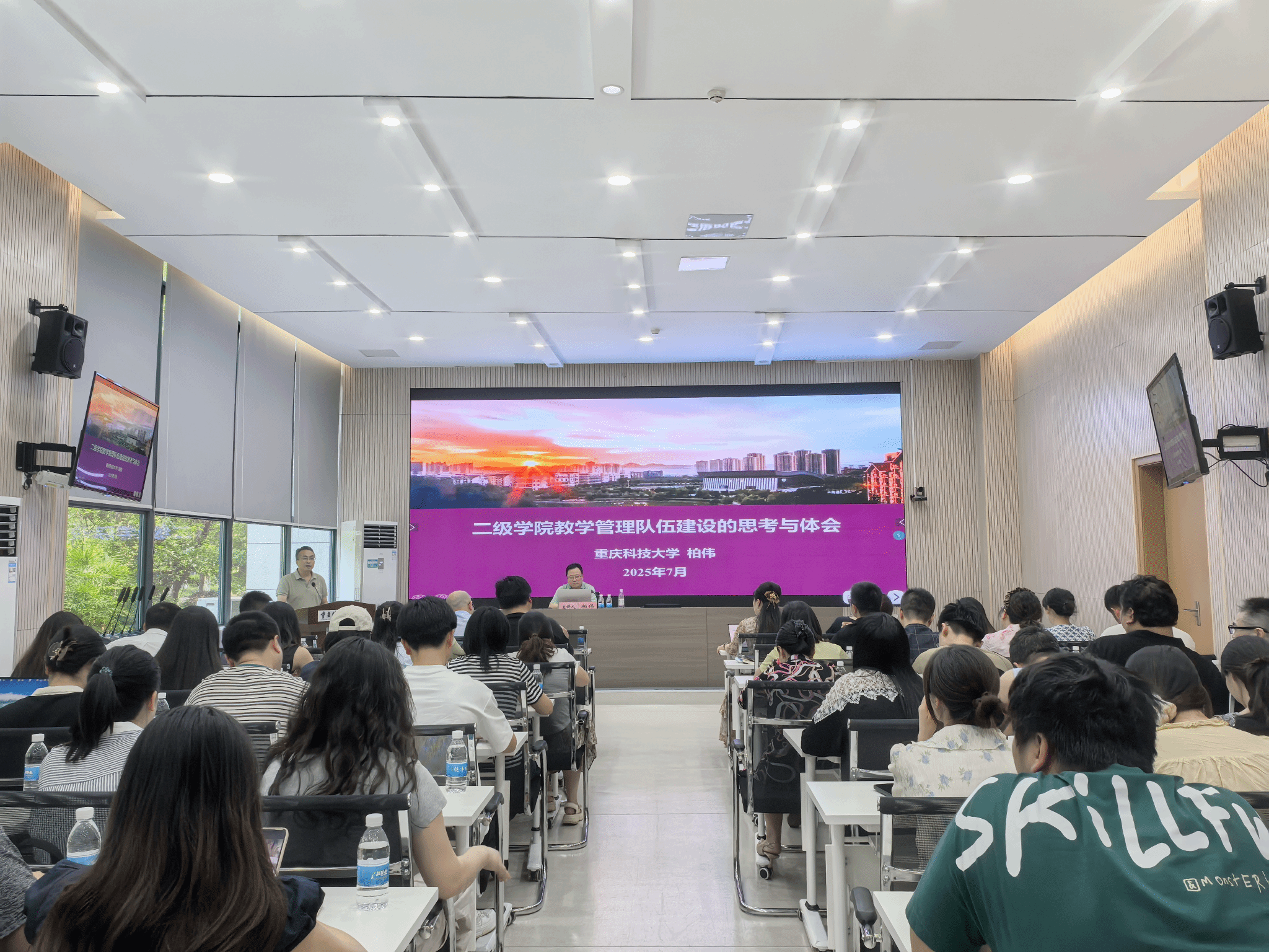 为了进一步规范学校教学管理工作,加强教学管理队伍建设,增强教学管理人员的服务意识,塑造一支素质高、业务精、能力强的教学管理队伍,7月16日,学校邀请重庆科技大学副校长柏伟教授为全校教学管理人员作了题为《二级学院教学管理队伍建设的思考与体会培训》的专题培训。二级学院副院长、教科办主任、教学秘书,评建办、质管办、教务处、信息技术中心、实验教学管理中心全体人员参加此次培训。