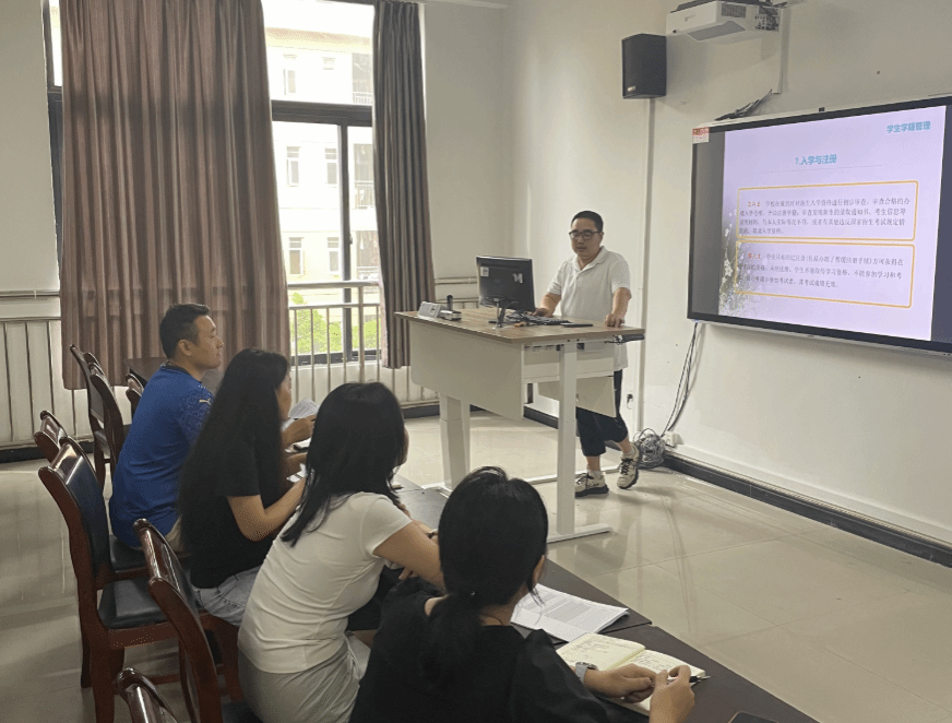 培训过程中,参会人员积极参与互动交流,针对日常工作中遇到的学籍管理问题展开讨论,教务办谭老师逐一进行答疑解惑,并分享实用工作技巧。