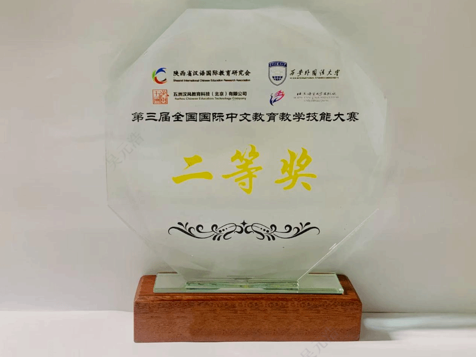 图为第三届全国国际中文教育大赛奖杯