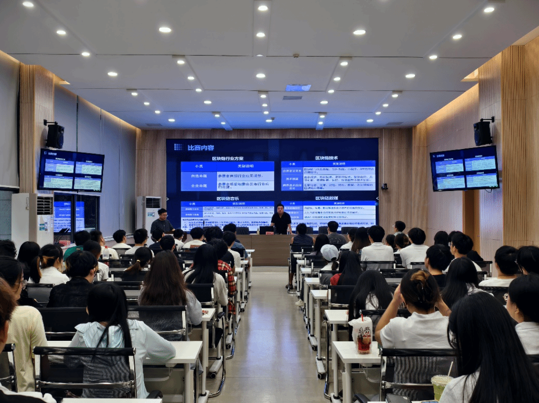 讲座伊始,曹怀志深入剖析了全国大学生区块链应用大赛的背景与意义。他指出,区块链技术正经历着飞速的创新与发展,其在金融、供应链、政务等多个领域的应用不断拓展,为新业务模式的诞生提供了强大动力。然而,区块链技术也面临着诸多挑战,如扩展性、安全性、法律监管等。在这样的背景下,全国大学生区块链应用大赛应运而生,旨在激发青年学子的创新活力,拓展区块链技术的应用场景,提升行业影响力,为区块链行业培育和输送专业人才。