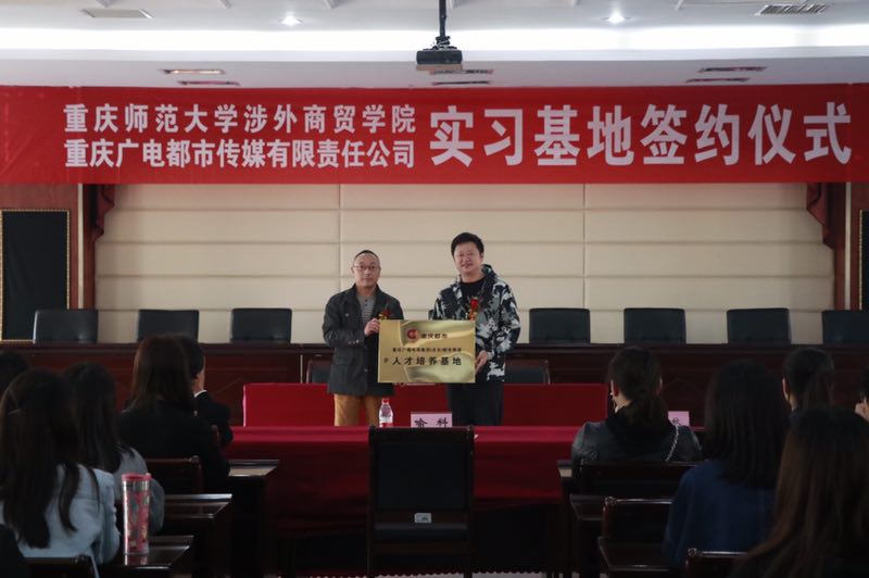 为进一步落实学校应用型人才培养计划,深化校企合作,扎实推进学科与专业建设,拓宽学生校外实习、就业渠道,经过学校与重庆广电都市传媒有限责任公司前期协商,10月31日,在学校大会议举行了实习基地签约仪式。重庆市播音主持协会主席、重庆广电都视传媒有限责任公司总经理韩咏秋、喻科副校长、表演艺术学院院长颜家成、重庆播音主持协会秘书长邹鸿泽、教务处副处长李川、表演艺术学院党总支书记任伟、播音教研室主任张琦、实践教学管理科科长从传锋、相关专业师生代表等出席仪式。仪式由表演艺术学院副院长温赞扬主持。