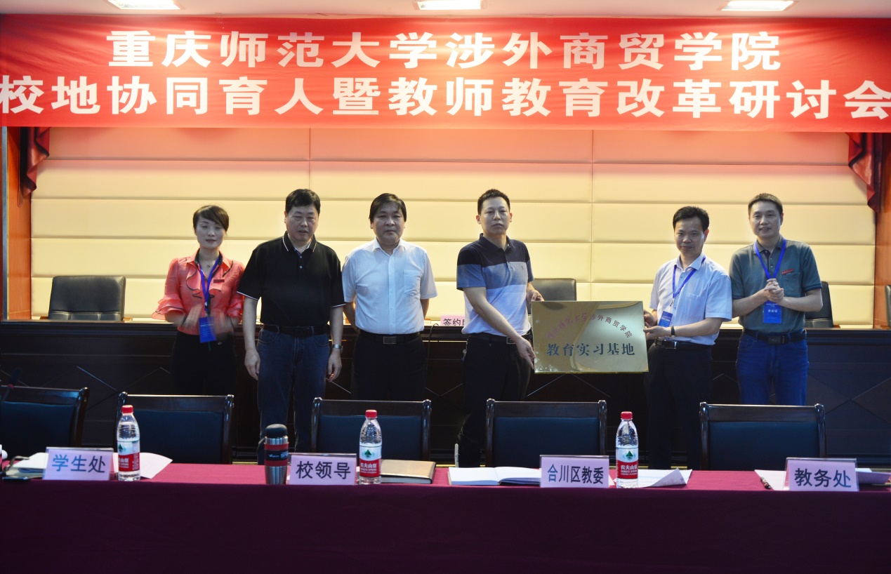 会议最后,我校与合川区南屏中学签订了共建教师教育实践基地协议,并举行了教育实践基地授牌仪式,合川区教育委员会王晓奎科长参与了仪式并做了讲话。他首先对我校教师教育的改革成效以及合川区中小学在师范生协同培养方面作出的辛苦而有效的工作给予了肯定。他指出,实践实习是师范生培养过程中的必要环节,希望在今后的工作中,院校与中小学要共同加强对师范生的管理,完善师范生的考核与考核的应用机制,确保师范生的实习实践质量,希望各方协同努力,能够培养出更多的、优秀的、符合新时代要求的人民教师。