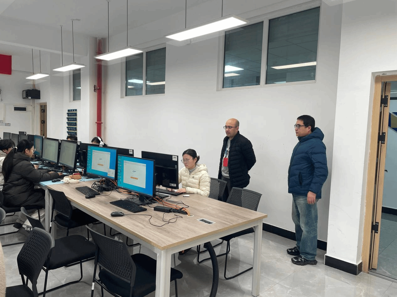为保障考试平稳进行,教务处在考前开展了周密部署,组织模拟测试与系统设备调试。通过模拟演练,考生提前熟悉了考试流程,各类考试设备—包括电脑、耳机及专用考试软件均经过反复检测与优化,确保在正式考试中稳定运行,从技术层面杜绝了可能出现的延误或中断情况。