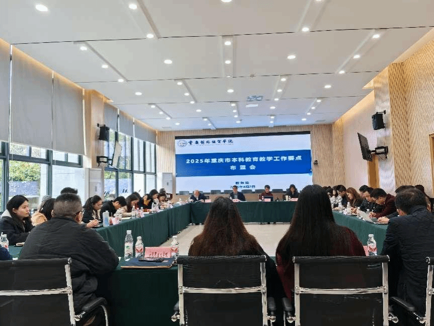 为进一步落实好2025年重庆市本科教育教学工作会议精神,紧扣住当前教育教学改革新形势,把握好深化教育改革的主攻方向,推动学校本科教育教学工作高质量发展,2025年4月1日,学校在A校区9106会议室召开2025年重庆市本科教育教学工作要点布置会。各二级学院副院长、教学秘书,督导办、评估办、学生处、信息技术中心、实验教学管理中心、教师教学发展中心负责人,教务处科级以上人员参加会议。