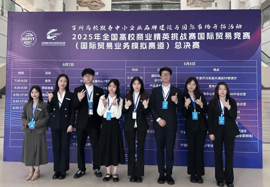 2025年6月5-9日,第十五届全国高校商业精英挑战赛国际贸易竞赛在宁波国际会展中心7号馆隆重举行。本届赛事由中国国际贸易促进委员会商业行业委员会主办,吸引全国198所高校的408支队伍、逾3300名师生同场竞技。我校由跨境商务学院牵头组建的2支代表队,历经八个月的备战,最终斩获全国一等奖1项、二等奖1项,创下我校在该项国家级B类学科竞赛中的最佳战绩。
